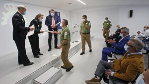 El Hospital Provincial de Pontevedra acogió ayer el acto de homenaje que recibieron los trabajadores de la seguridad privada en el ámbito sanitario. Se entregaron 26 menciones honoríficas de la