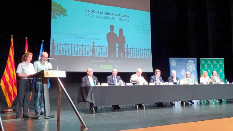 El presidente de APROSER Cataluña, Juan Montero, y la gerente de ACAES, Anna Aisa, ambos en representación de las empresas privadas de Tarragona, se han reunido para celebrar la XV edición del Día de la Seguridad Privada junto con la Subdelegación del Gobierno en Tarragona, a través de la Comandancia de la Guardia Civil y la Comisaría Provincial de la Policía Nacional, en el Teatre Auditori de Salou.